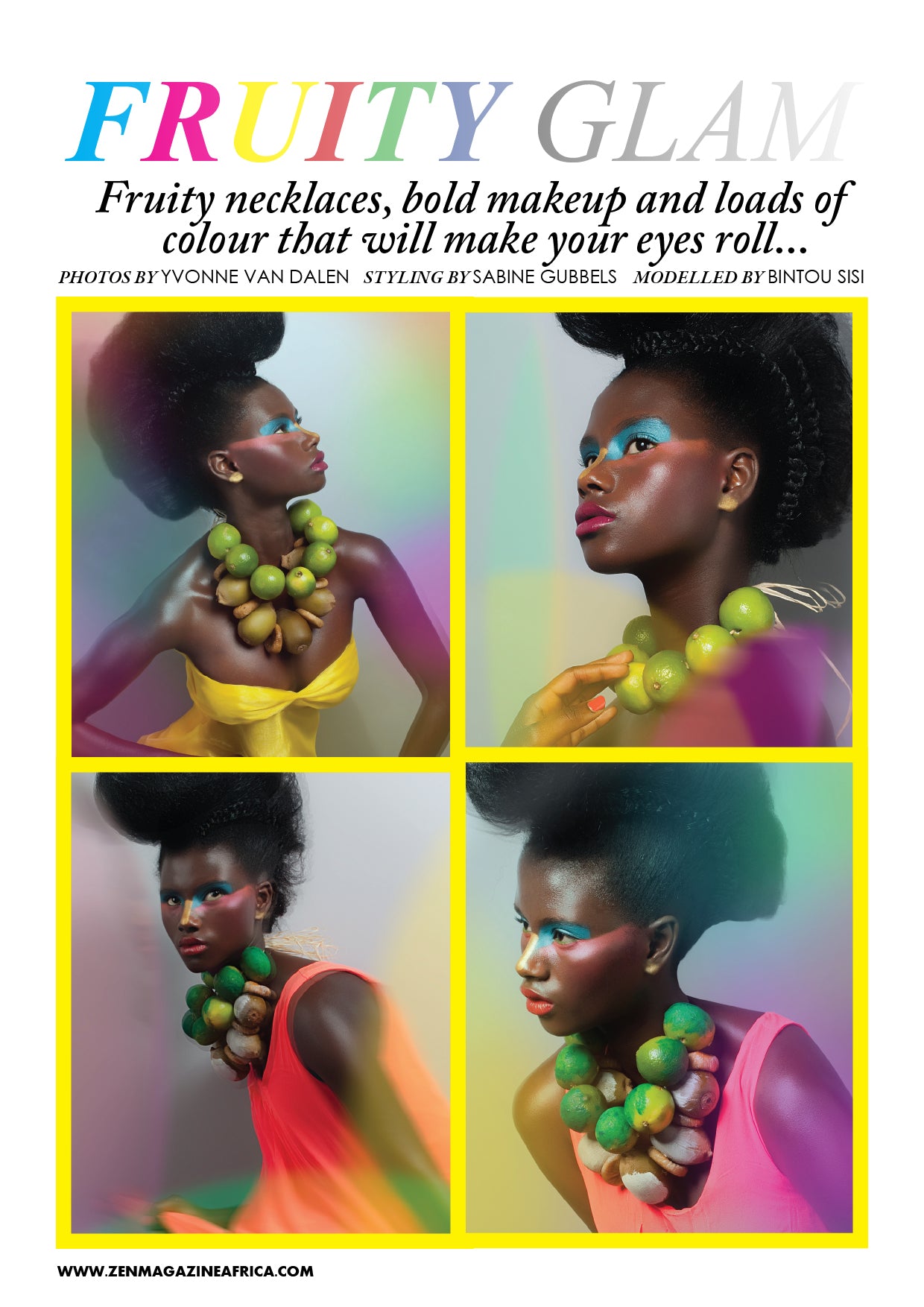 Photography & MUAH for "Fruity Glam" Editorial. Styling: Sabine Gubbels, model: Bintou.)