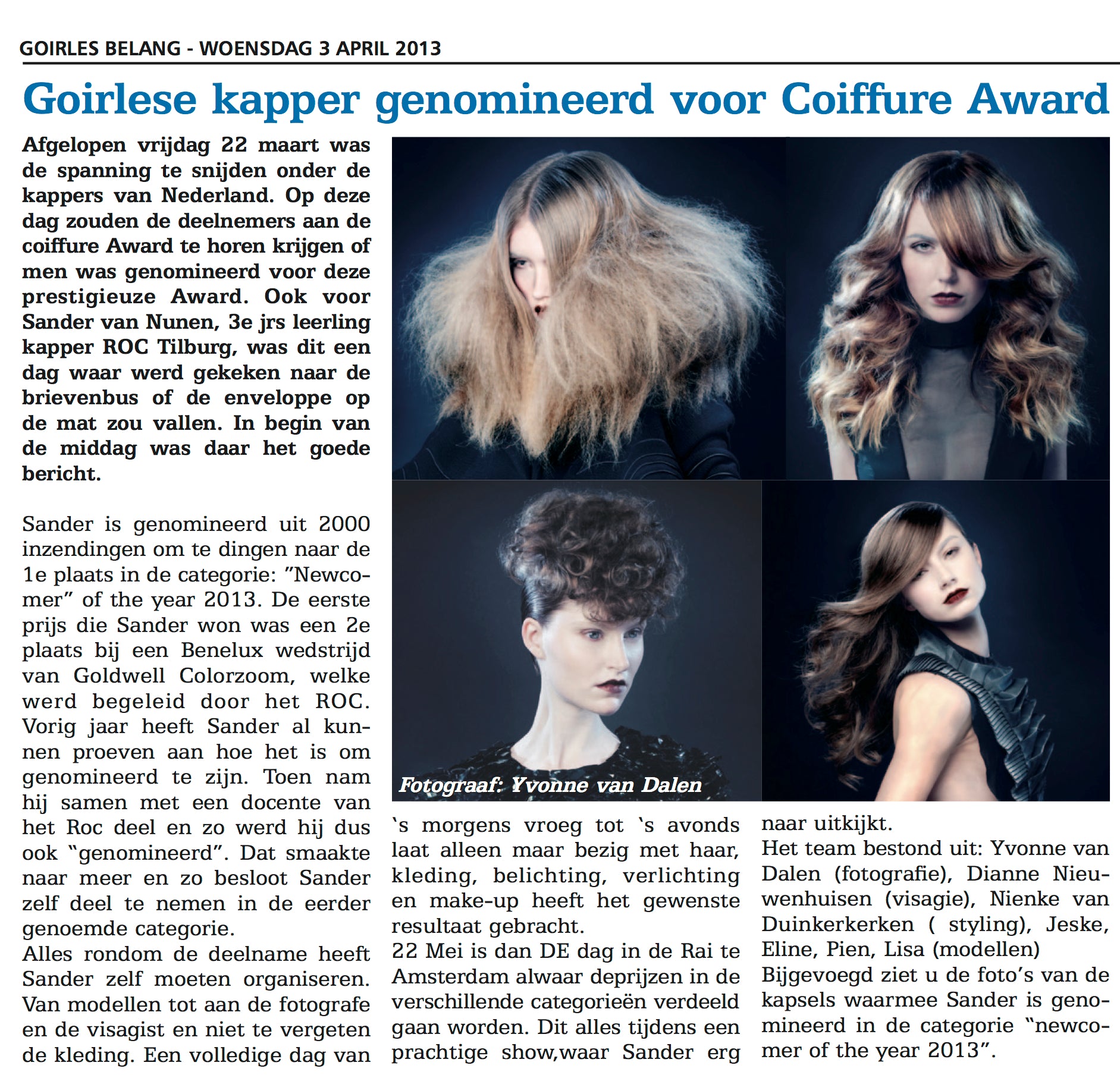 Photography for Coiffure Awards "Newcomer of the Year" Nominee Sander van Nunen (MUA: Dianne Nieuwenhuisen, Styling: Nienke van Duinkerken, models: Jeske, Eline, Pien, Lisa. Oisterwijk.)